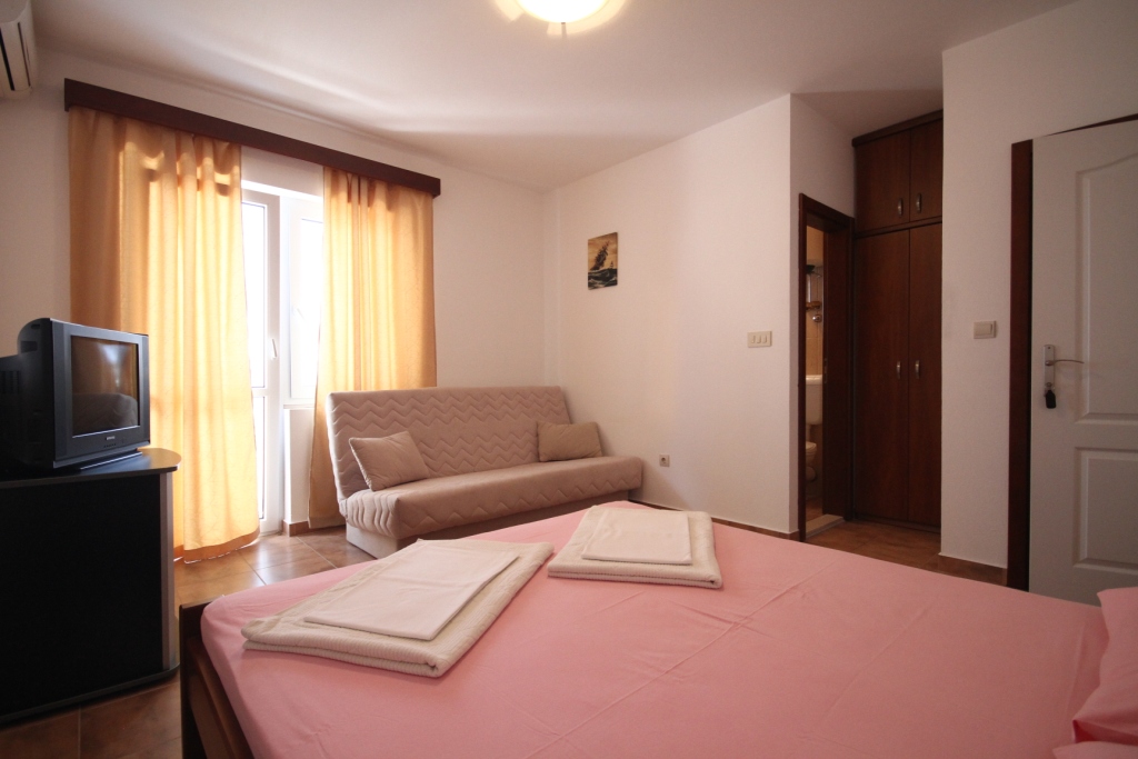 Studio-apartmani,moderno opremljeni,na nekoliko minuta od plaze,preko puta hotela Mediteran,u istoj ulici se nalaze 2 marketa,pekara,apoteka i 2 restorana,pogodno za porodice sa malom decom zbog blizine plaze.Za detaljnije informacije mozete da nas kontaktirate telefonom ili e-mail-om.Do skorog vidjenja !!